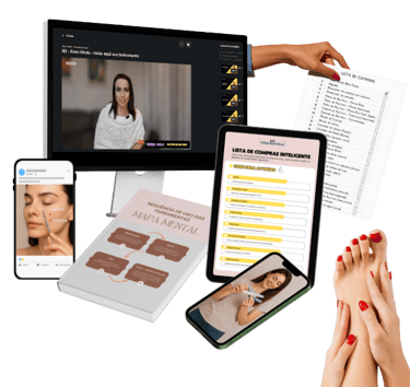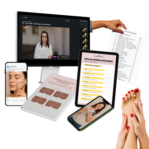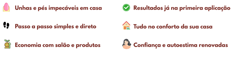 Assim, você entende com clareza como começar, o que vem depois e como finalizar o cuidado das mãos, dos pés e da pele, tudo de forma simples, organizada e fácil de memorizar. Ideal para quem quer autonomia, segurança e praticidade no dia a dia.