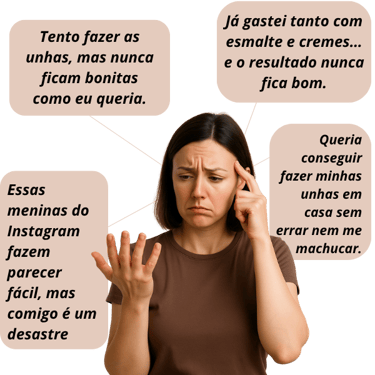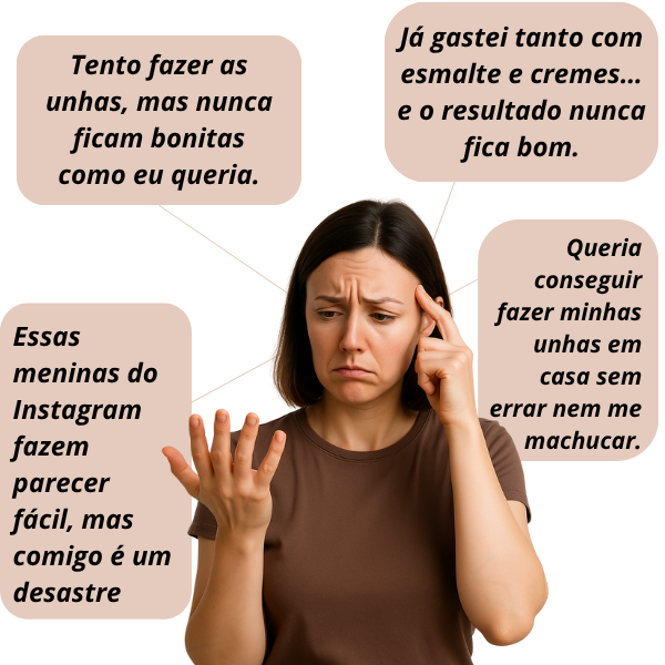 Cada vídeo ensina de um jeito e, no fim, suas unhas continuam tortas, com falhas e sem aquele acabamento bonito que você queria