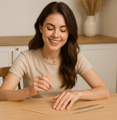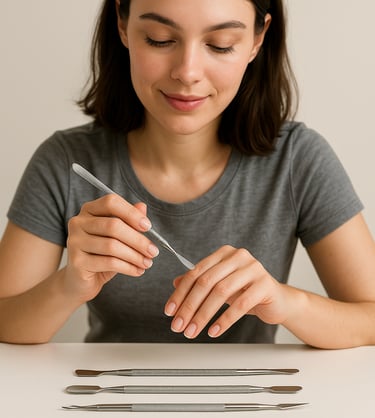 O passo mais importante: saber como manusear cada ferramenta com segurança e precisão. É aqui que você começa a fazer, de verdade, suas unhas como uma profissional — mesmo em casa.